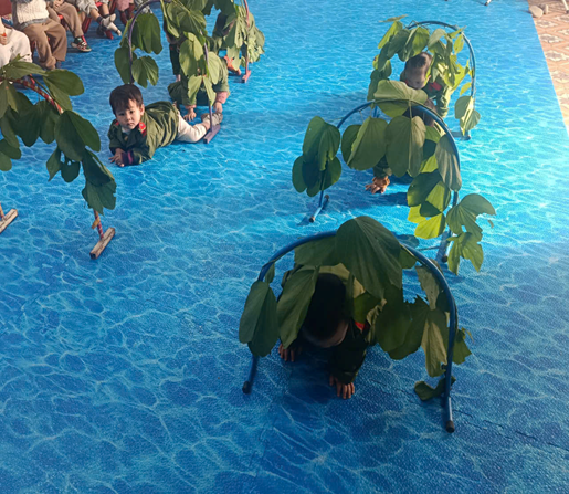 Lớp nhà trẻ A1 + A2 với hoạt động: “Bò chui qua cổng, làm mũ tặng chú bộ đội”